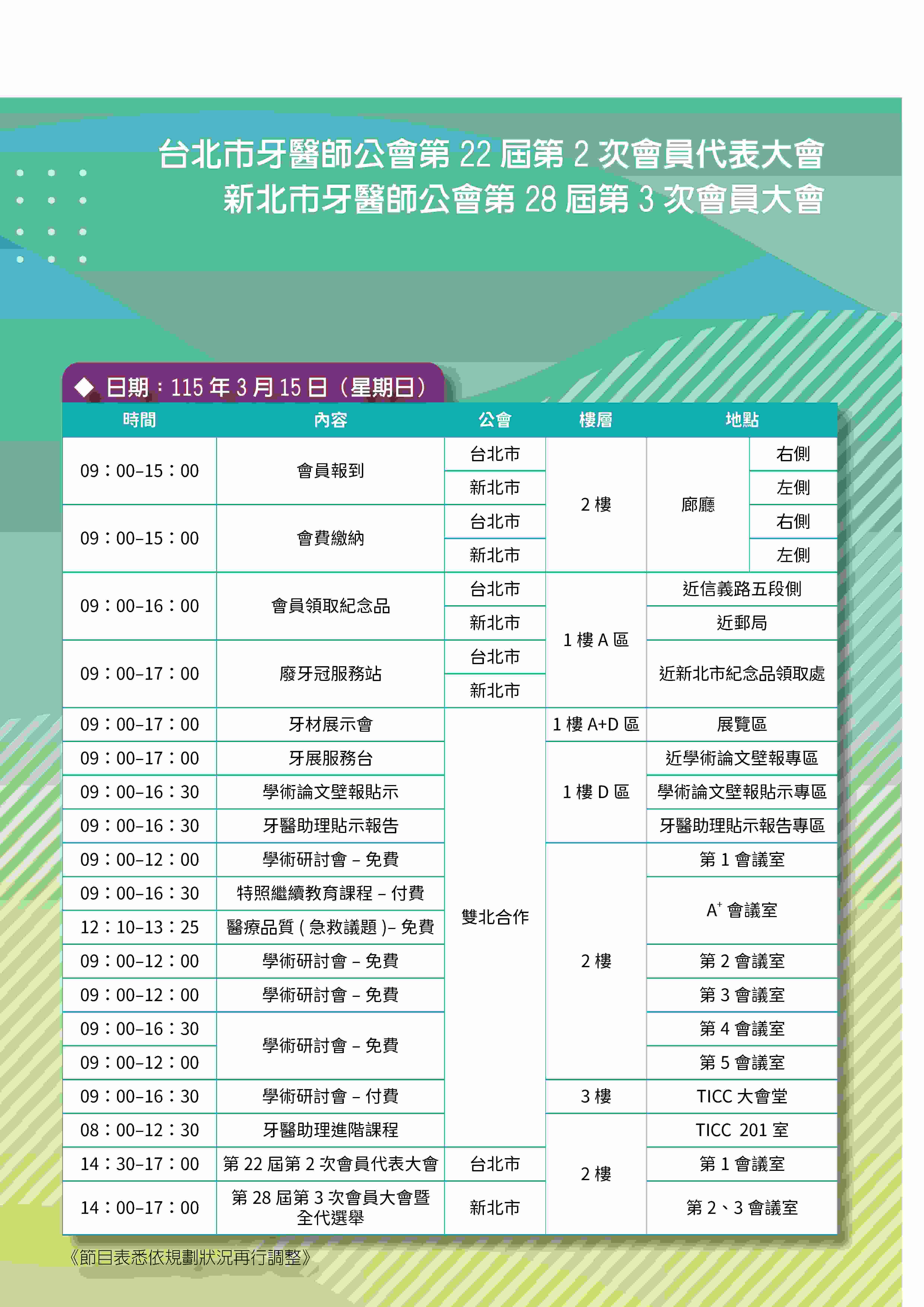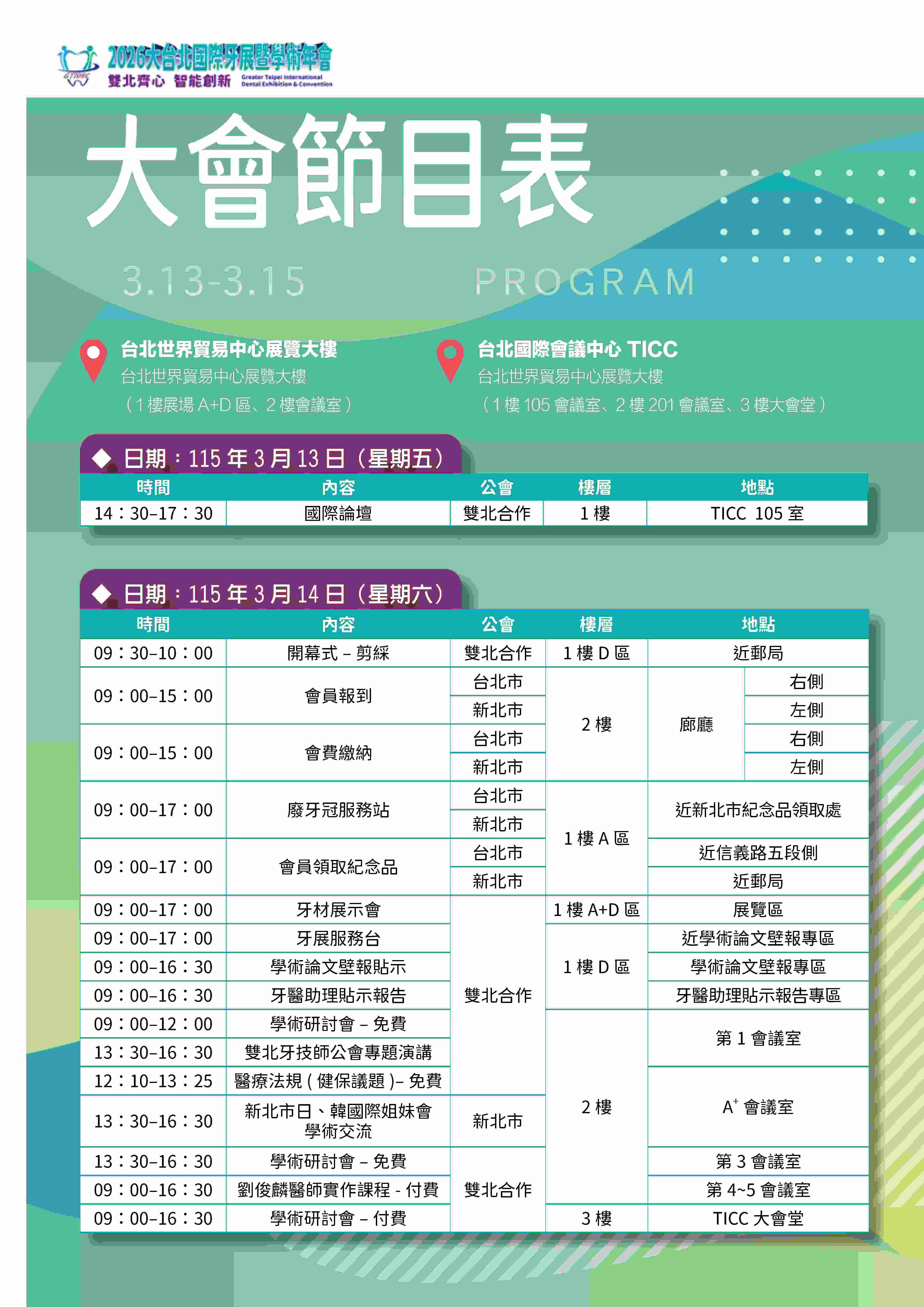 | 大會活動分組 | 台北市組長/承辦會務 | 新北市組長/承辦會務 | 總組長 |